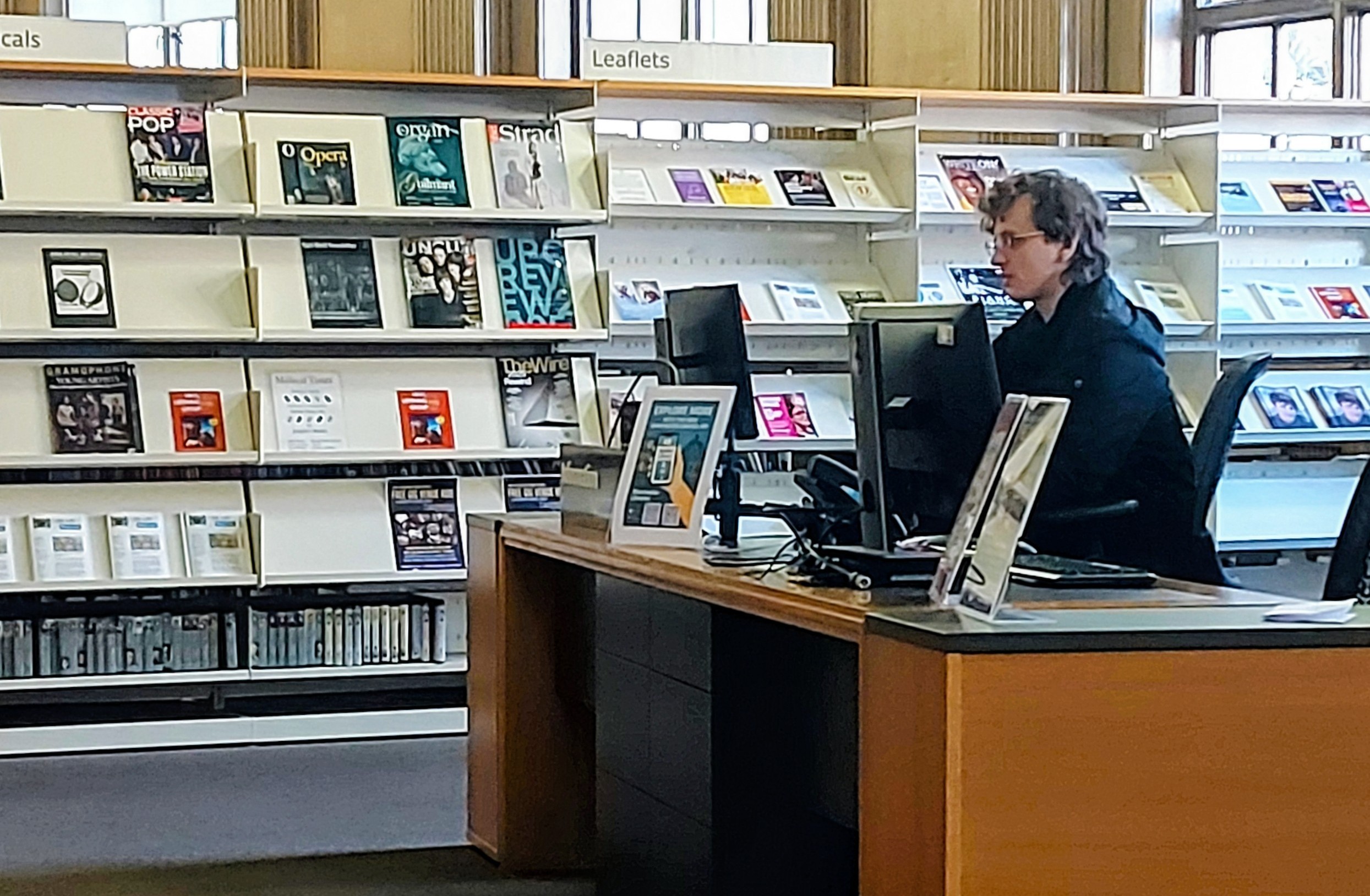 “Mornings are usually the quietest, so we use that time to collect up any stray items, empty the returns boxes, locate items that have been reserved and do any shelving and straightening. We have a bank of public computers that is always busy and we often assist customers with logging in and printing. There are also two iMacs loaded with music production software such as Pro Tools, Sibelius and Ableton which any library member can use, together with equipment such as a DJ controller and piano keyboard. In addition, we have three electric pianos and a drum kit within the department and these can be used by any member of the public wearing headphones.