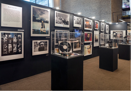 The selected prints document the band both in concert and in the studio, backstage, and during photo shoots, and these images are complemented by album covers, tour and concert memorabilia, period cameras, and photographic equipment.