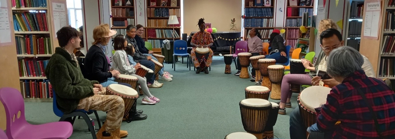Our free monthly West African Drumming Workshops for adults and families led by Mbilla Arts continue to be increasingly popular, as are our free-to-use digital pianos and ukuleles.